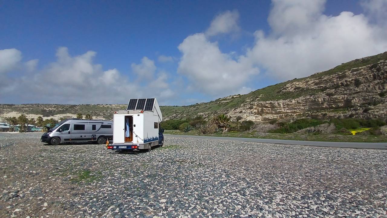 Die Nacht war angenehm. Zwar gab es ein paar schnatternde Gänse, aber das ist bei Plätzen mit Publikumsverkehr normal. Bei einem prüfenden Blick aus dem Fenster bemerke ich, das Michael und Andrea schon weg sind. Die haben heute Waschtag in Limassol und gehen ihren eigenen Weg. Einen Treffpunkt haben wir gestern ausgemacht.