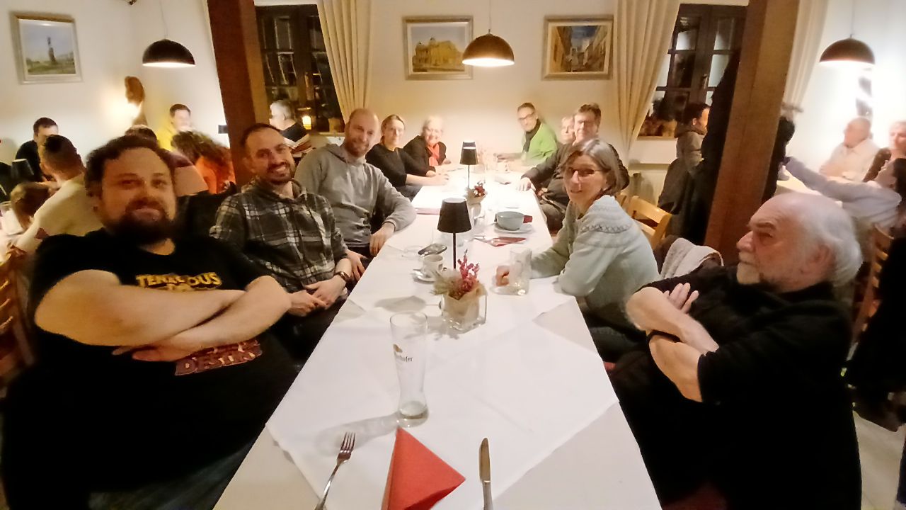 Die Füße tun weh und wir brechen den Marktbummel ab um nach Ossweil zu fahren. Große Tafel mit Otto und Karin, Rainer und Sabine, Philipp, Basti und mein Michael. Kneipe ist laut, aber das Futter ist super.