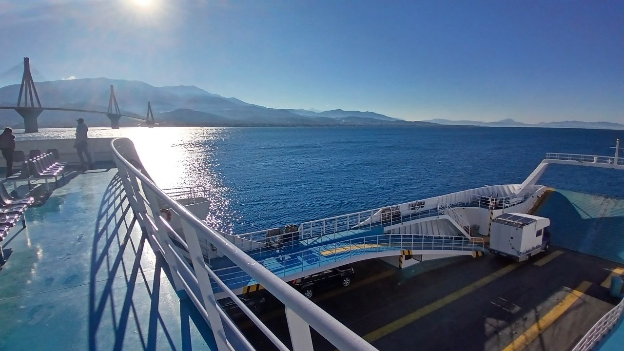 Den Golf von Korinth haben wir wieder mit der Fähre überquert. Schlägt mit nur 12 €, gegenüber der Brückenmaut 23,70 €, zu buche und macht mehr Spaß.