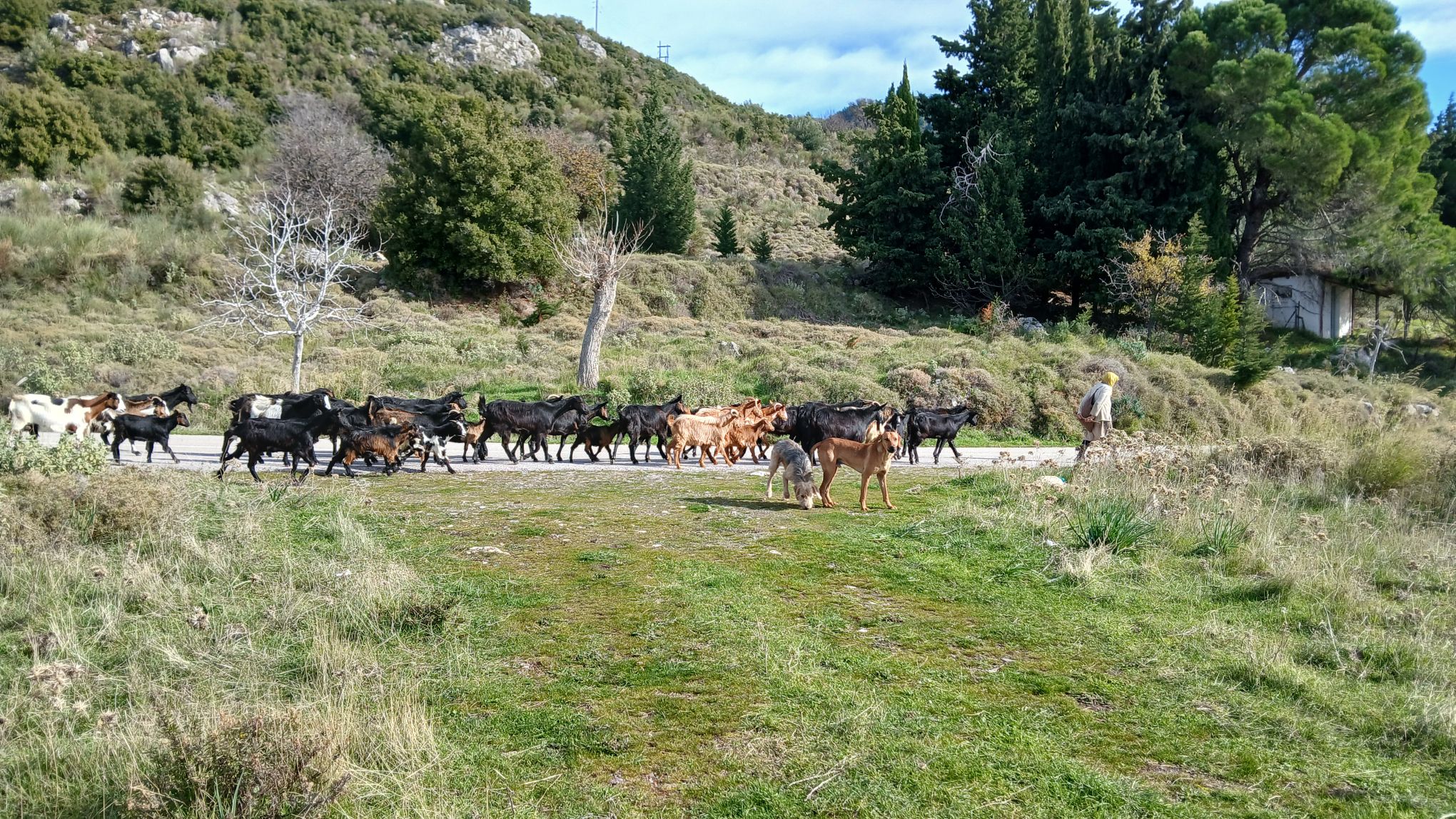Kaum stehen wir da kommt schon eine Herde Ziegen vorbei.