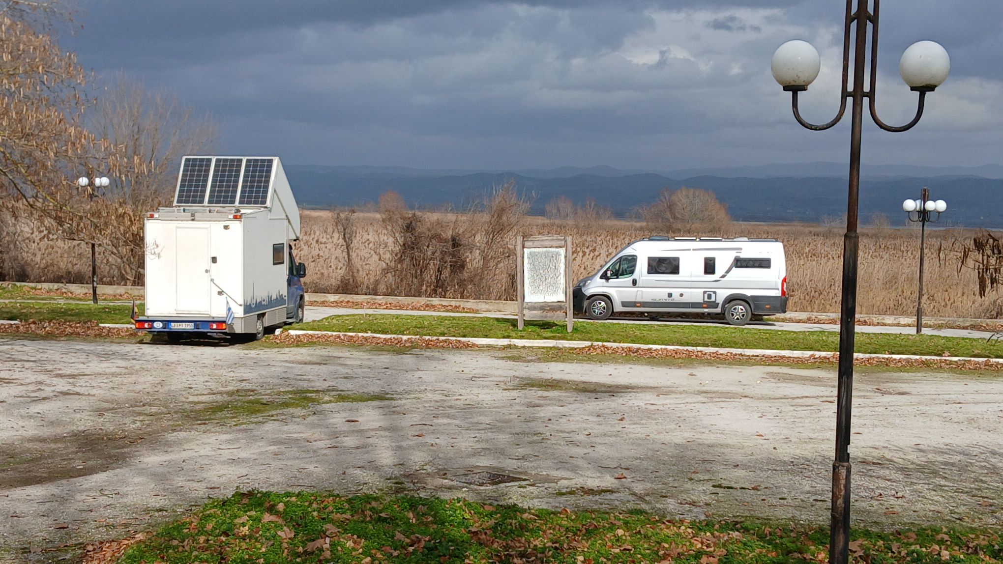 Wetter ist genial. Der „Regen“ füllt meine LiFePo4 mit durchschnittlich 15 Ampere. Die dicken, schwarzen Wolken sind in Sichtweite, versperren aber der Sonne nicht den Blick auf meine Solarzellen.
