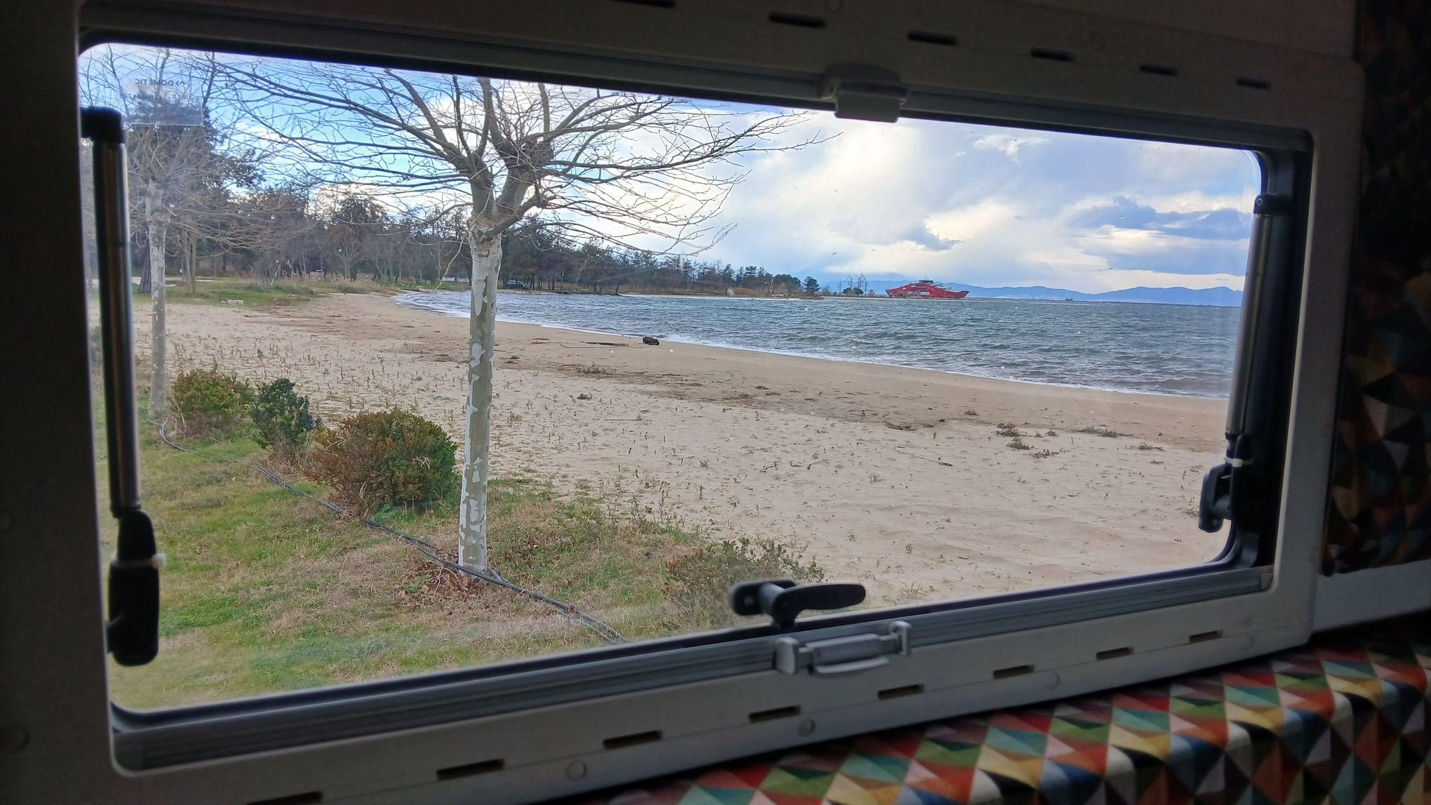 Wir wurden stürmisch geweckt. Das was Anke dazu veranlasst hat, zu sagen das die Welt bei ihr gerade untergeht, ist nun bei uns eingetroffen. Einige kurze, aber kräftige Windböen haben unser Auto durchgeschüttelt. Die Temperatur fällt rapide. War es in der Nacht so warm, das ich keinen Grund sah einzuheizen, muss ich nach dem aufstehen die Wartungsklappe öffnen um den Wagen schnell aufzuheizen.