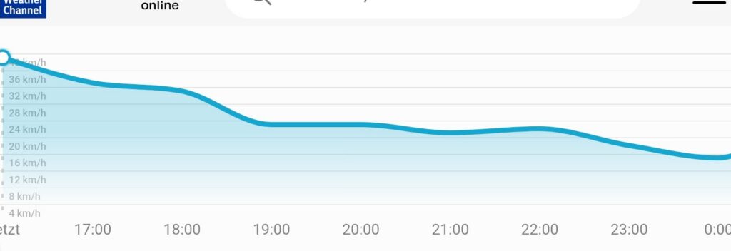 Das angekündigte, schlechte Wetter ist ganz gut. Wider erwarten steigen die Temperaturen auf 17°. Der Wind bläst ordentlich und schiebt etliche Wolken umher.