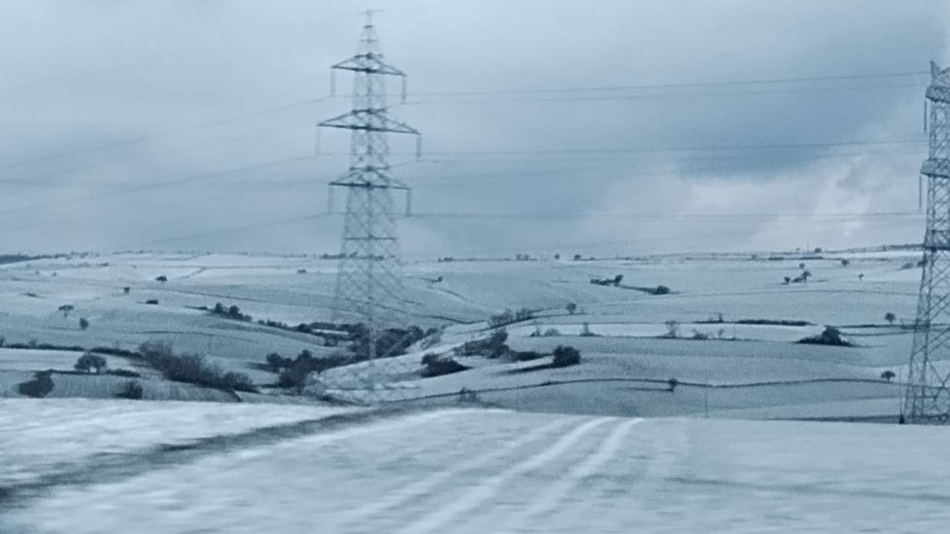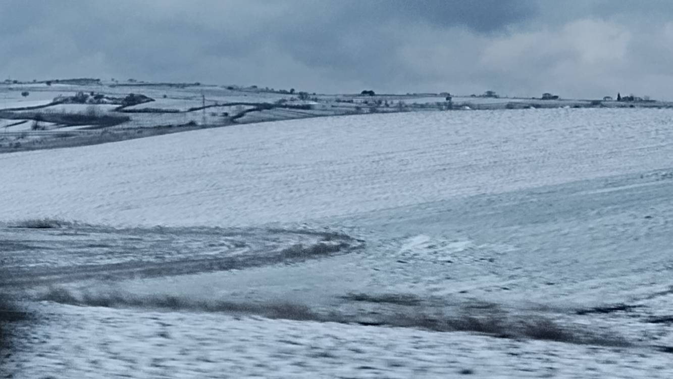Ganz langsam wird es hell. Die Berge Hügel um uns herum sind weiß!