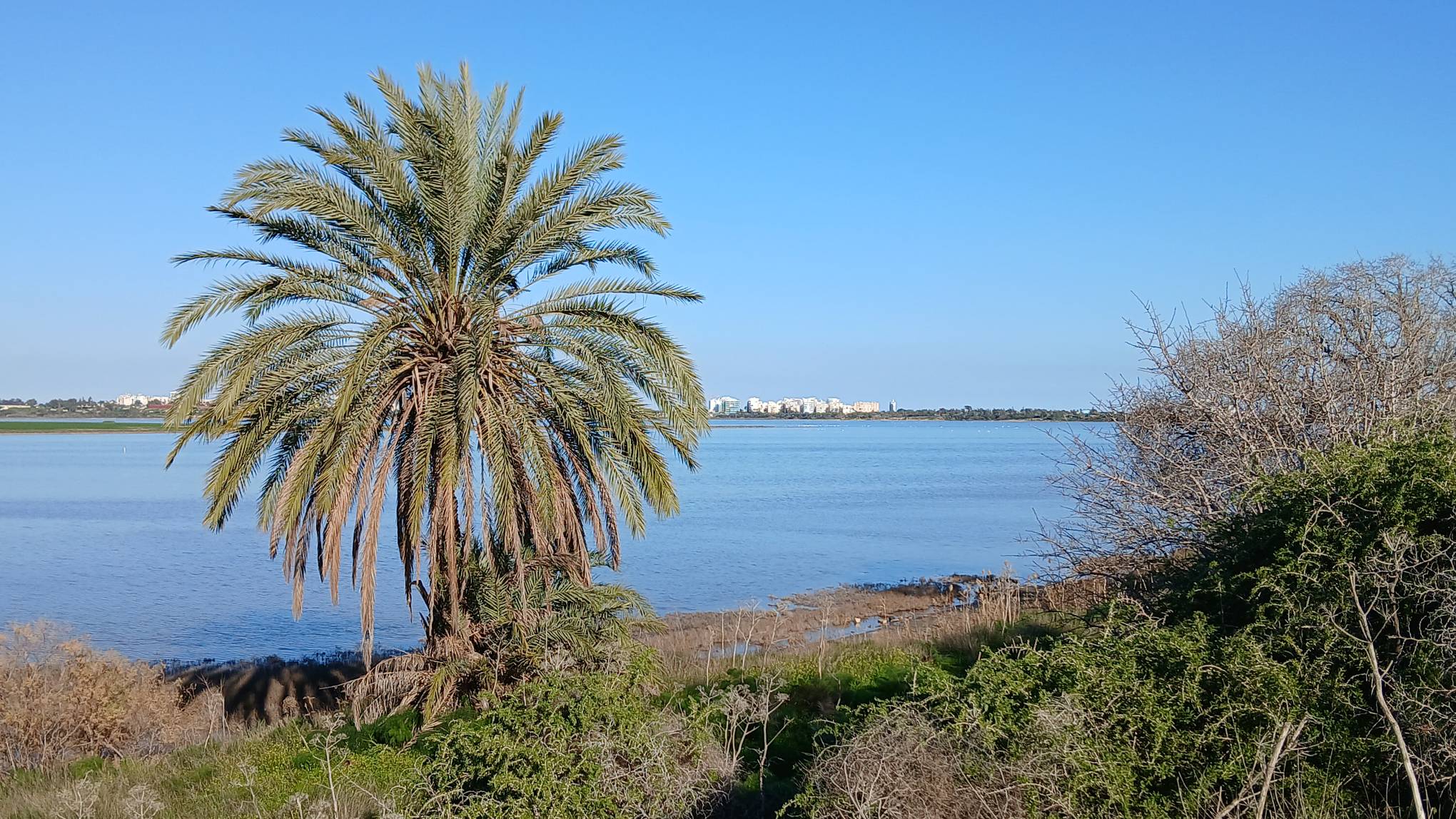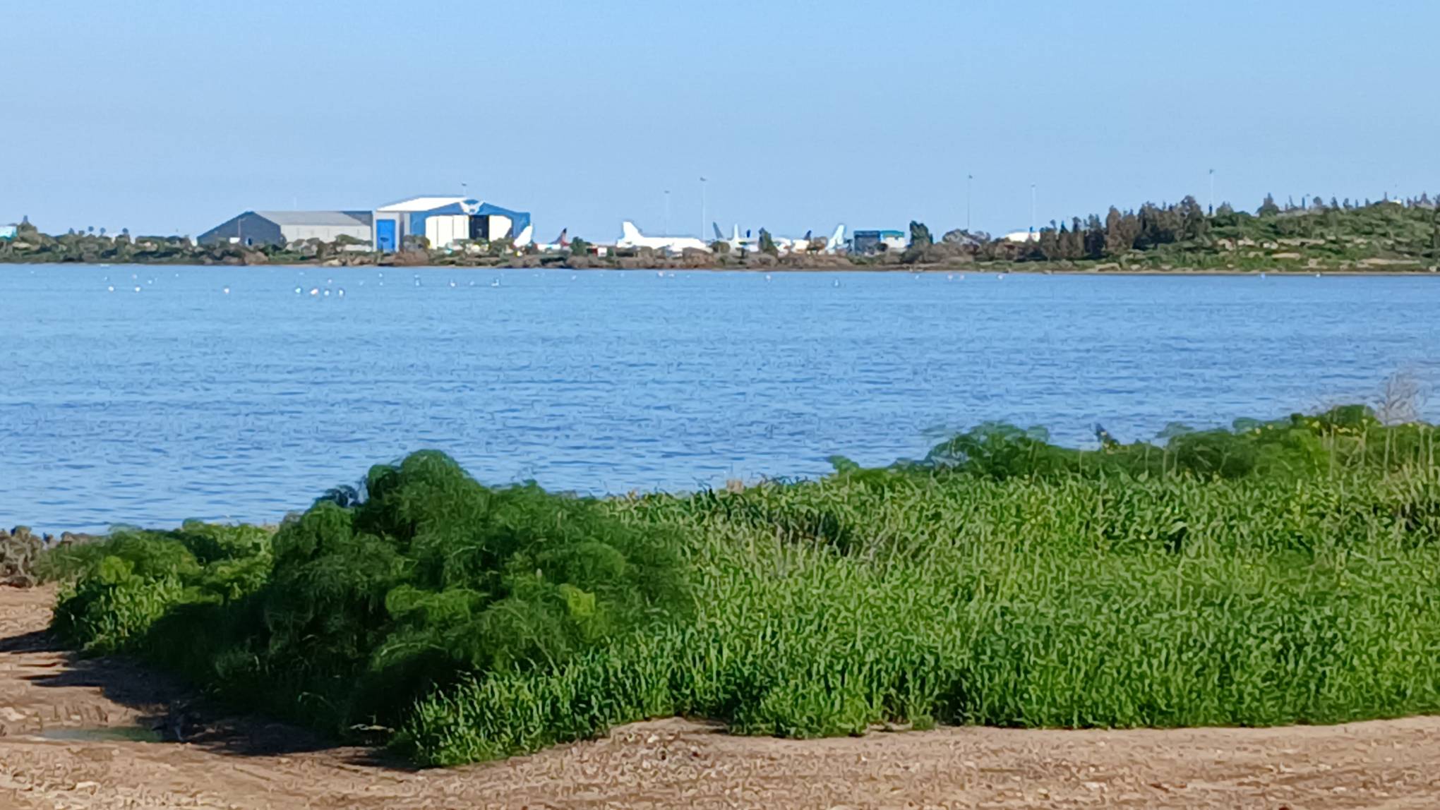 Von hier haben wir einen tollen Blick auf den großen Larnaka Salzsee. Leider sind die Flamingos nicht da, dafür ein Flughafen gegenüber.