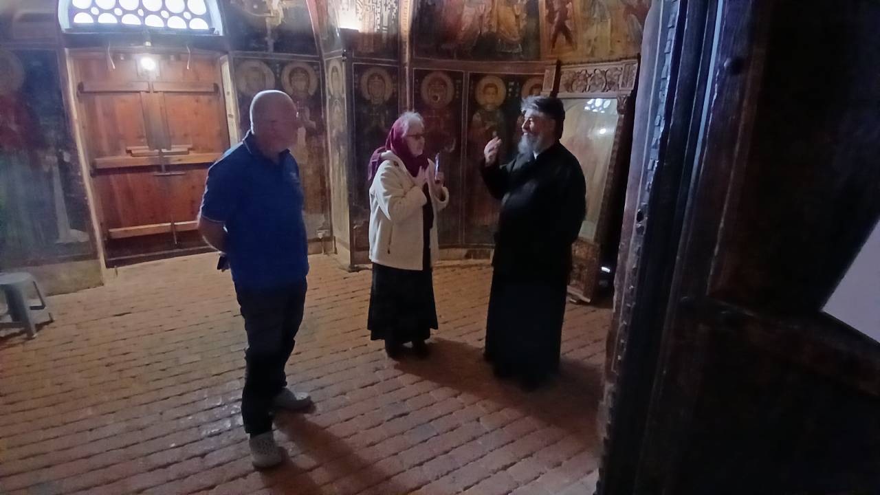Wir bekommen alles erklärt und eine Fotografiererlaubnis. Wir umrunden das Kirchlein noch ein paar mal für Außenaufnahmen und winken der Reiseleitung hinterher.