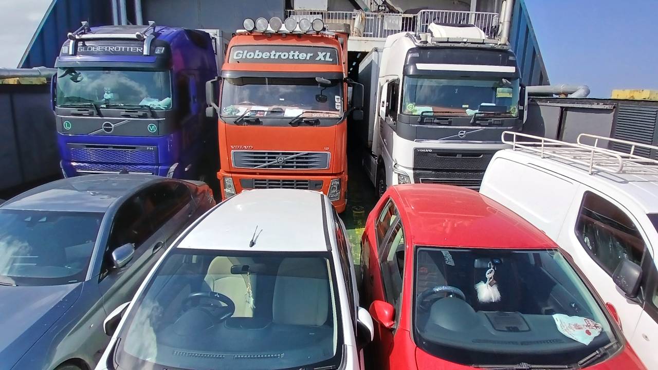 Die Pforten öffnen sich und ich gehe zur Passkontrolle. Sie wollen auch Dagmar sehen. Nächste Station, direkt im Anschluß der Zoll. Kurzer Blick ins Auto und wir können zur Fähre fahren.