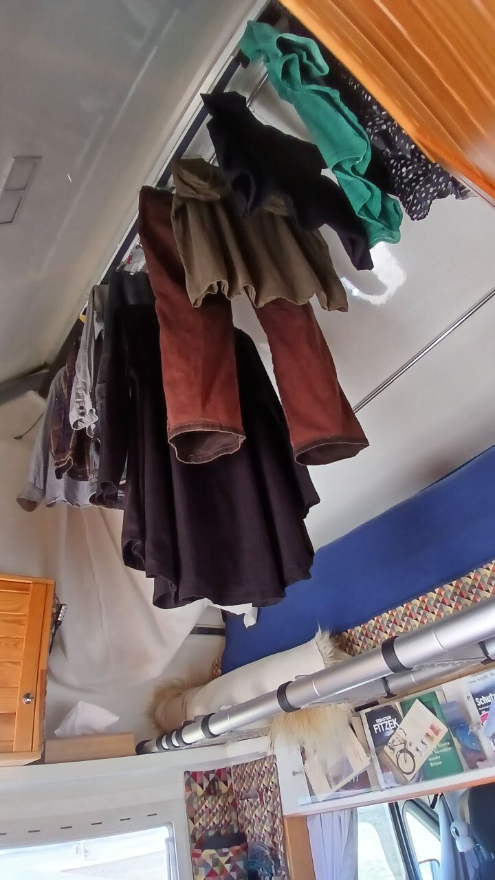 Die frisch gewaschene Wäsche hängt im Dachboden zum trocknen. Die Heizung bleibt weiterhin im Betrieb und wir lüften gründlich.