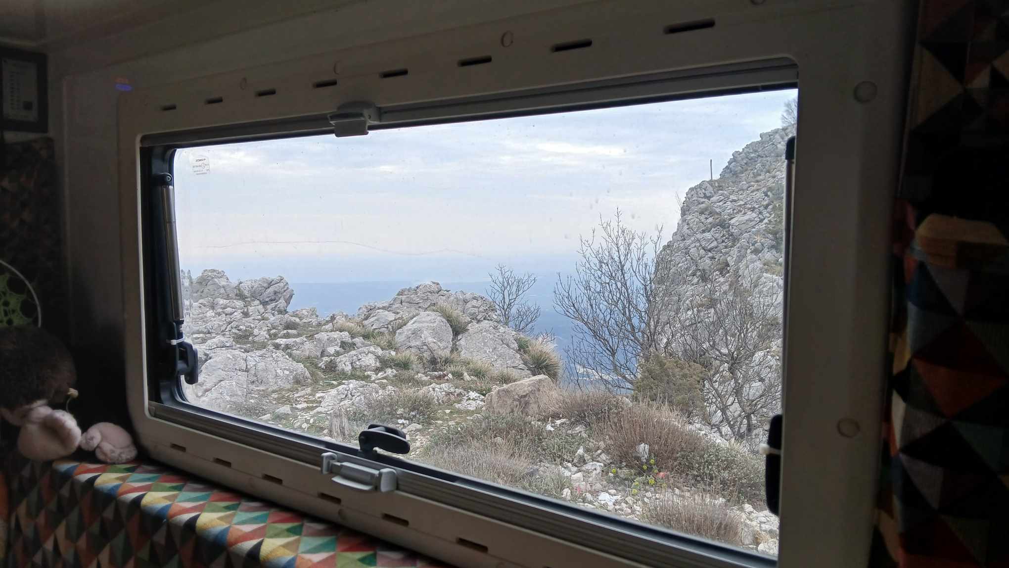 Wir frühstücken neben der Straße und ich picke zwei Plätze heraus. Einer oben in den Bergen und einen am Meer.