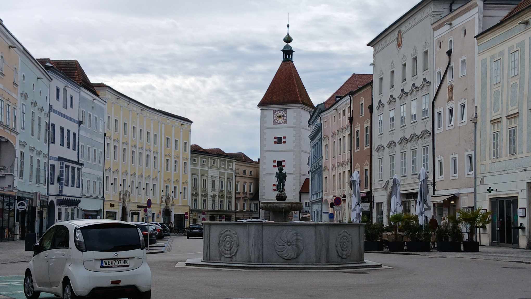 Guten Morgen. Es gibt eine Planänderung. Wollte die Familie Jakob uns abholen um gemeinsam Wels anzuschauen, habe ich per WhatsApp mitgeteilt das wir selber nach Wels fahren. Zum eine wäre das ein größer Umweg gewesen und zum anderen wollte Dago den Wagen/Kleiderschrank/Toilette dabei haben. Wir wussten auch nicht, wie der Nachmittag endet.