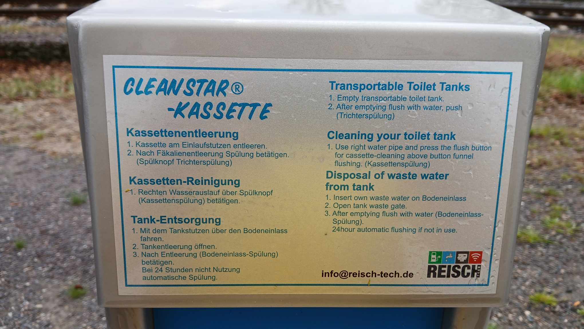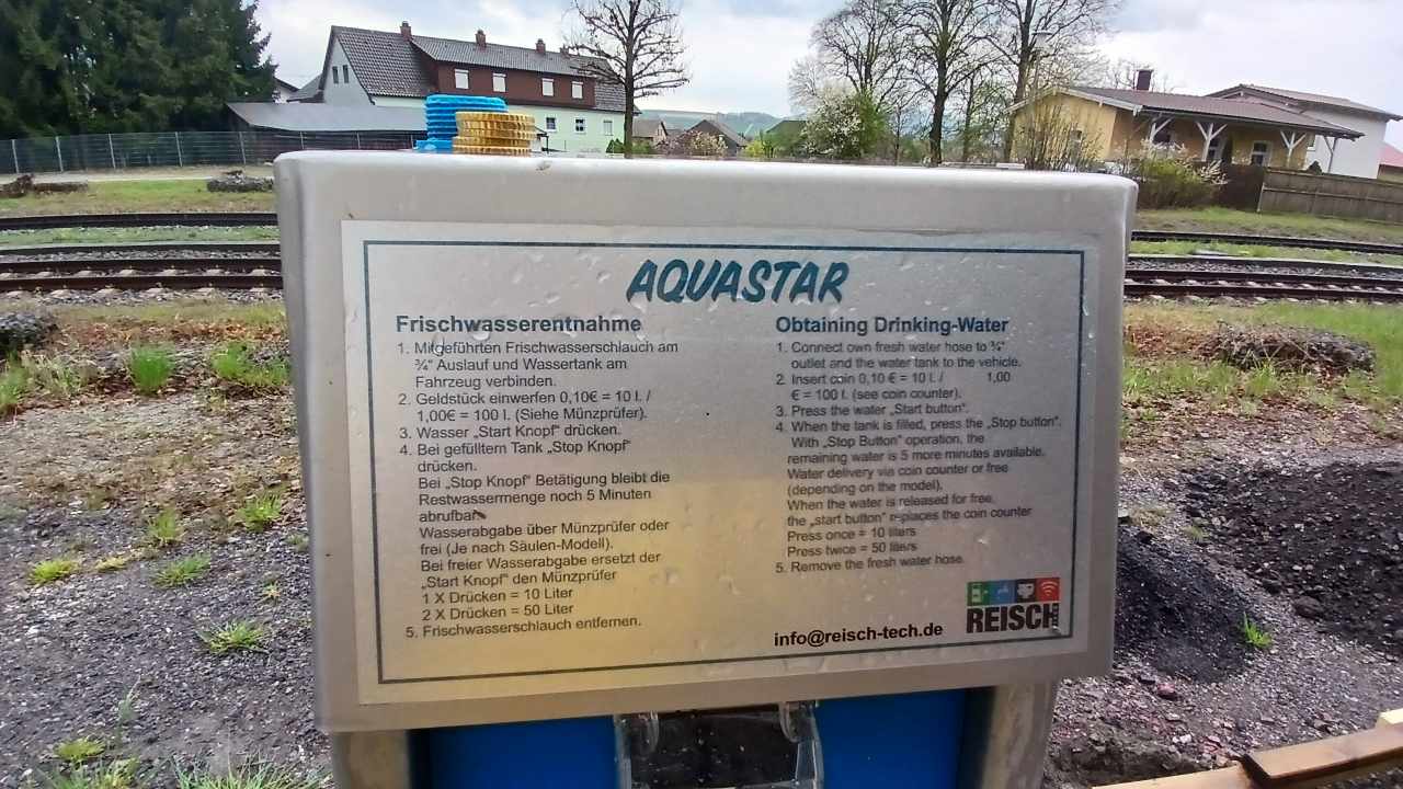 So, die Wasserkrise ist beendet, kaum das sie angefangen hat. Man muss auch mal nach hinten schauen. Eine traumhafte Versorgung von der sich mancher Platz etwas abschauen könnte liegt wenige Kilometer hinter uns. Man muss nicht 1€-Münzen gesammelt haben, um hier den Service zu genießen. 10er, 20er, 50er, 1€ und 2€ Münzen frisst der Automat. Egal ob Bodeneinlass oder Kassettenentleerung, hier kein Problem.